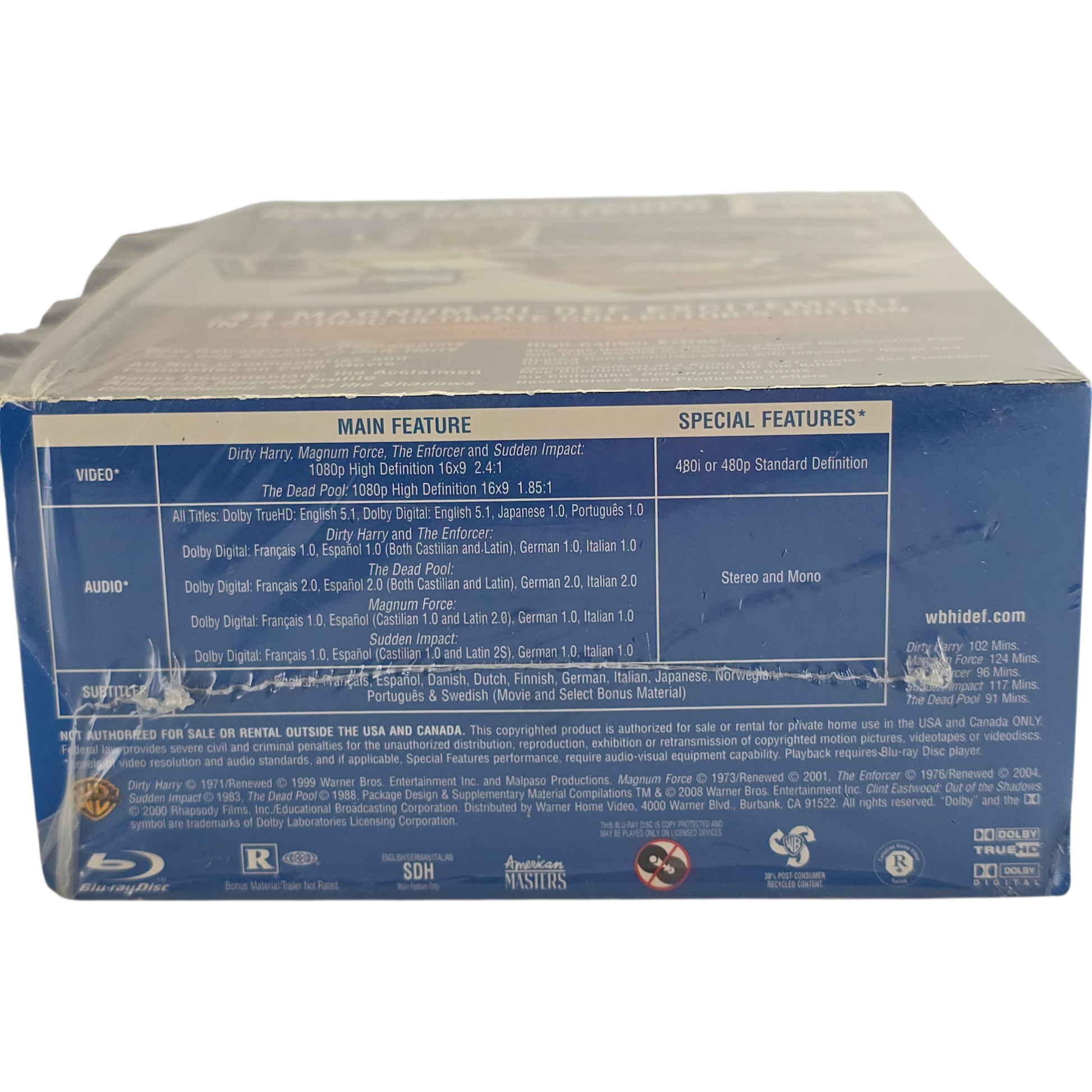 | Contenu | 5 disques Blu-ray (Dirty Harry, Magnum Force, The Enforcer, Sudden Impact, The Dead Pool) |
