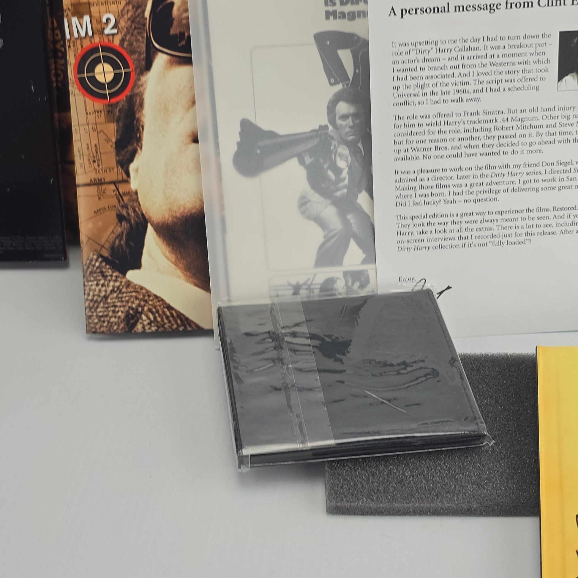 | 🎁 Bonus | • Documentaire “The Long Shadow of Dirty Harry” • Commentaires audio pour chaque film • “American Masters: Out of the Shadows” • Livre rétrospectif, badge collector, artcards, poster, lettres de production |