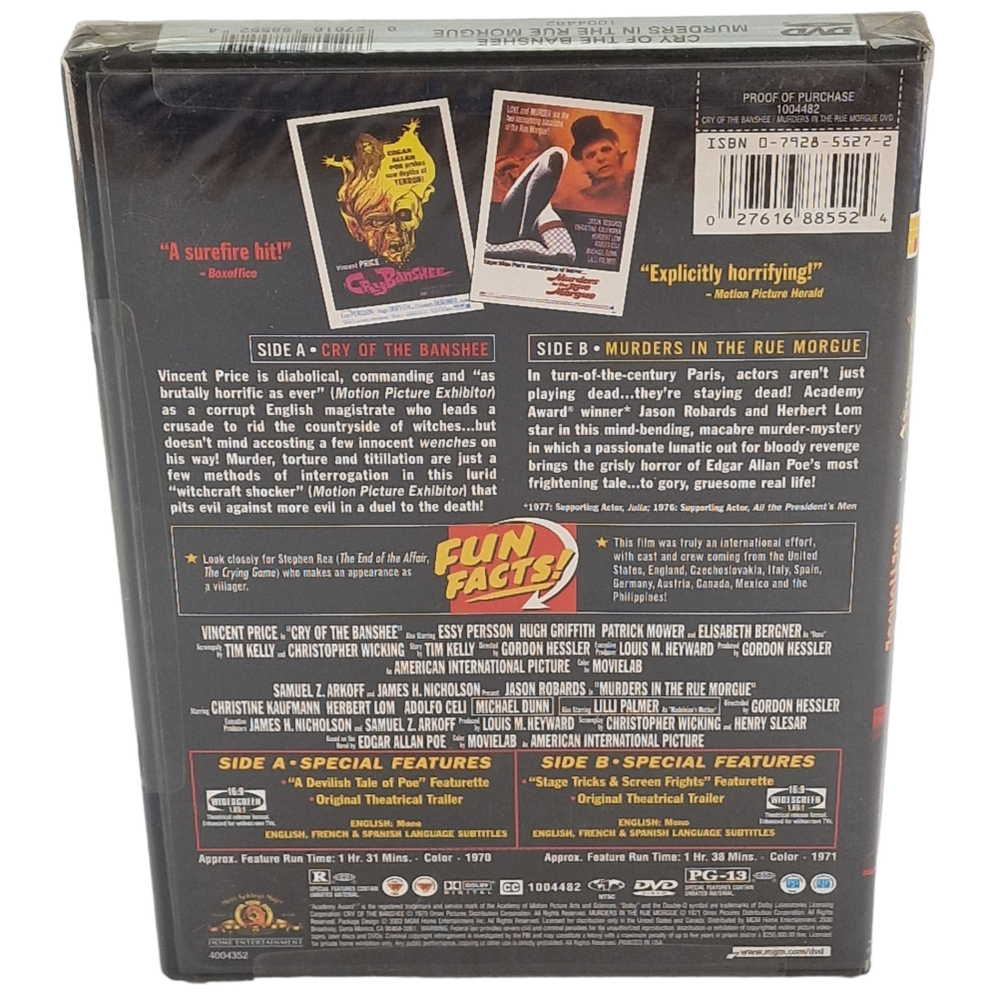 | Contenu | 1 DVD – double face : Face A : Cry of the Banshee Face B : Murders in the Rue Morgue |