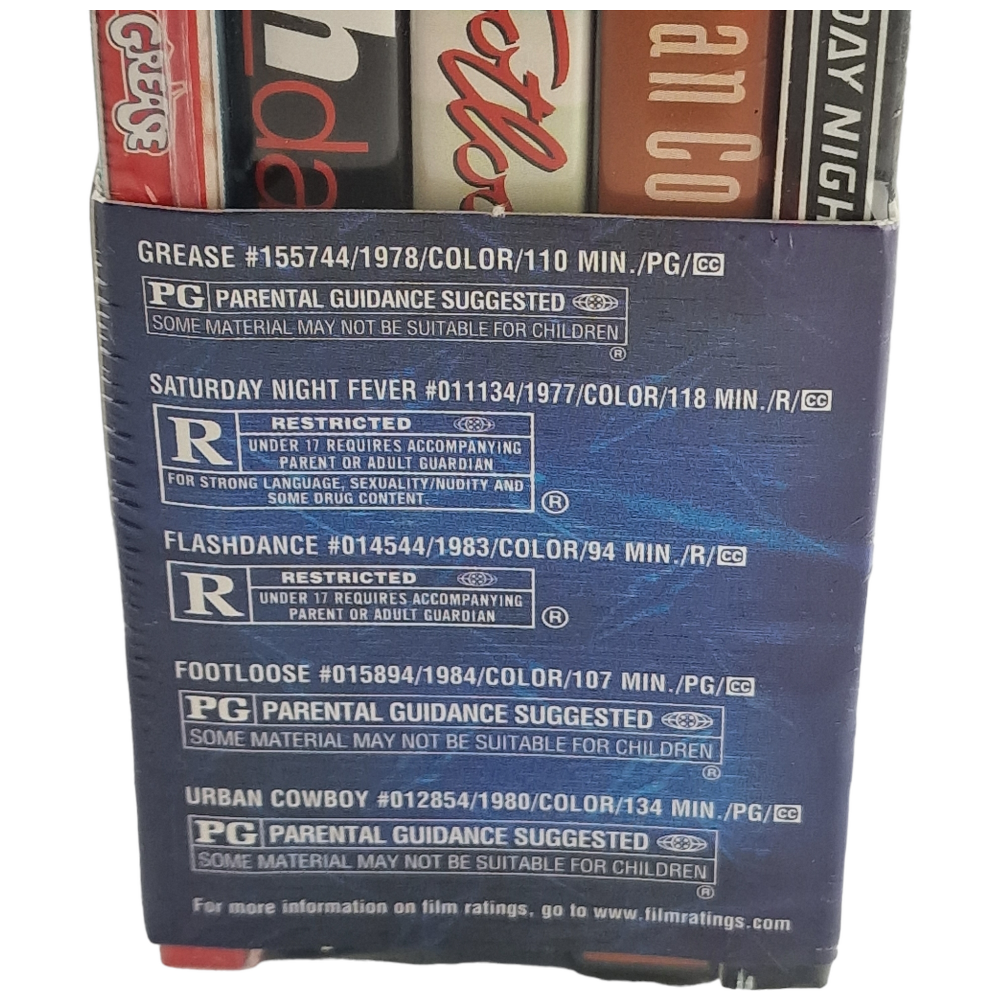 | Contenu | 5 DVD : Grease, La Fièvre du samedi soir, Flashdance, Footloose, Urban Cowboy |