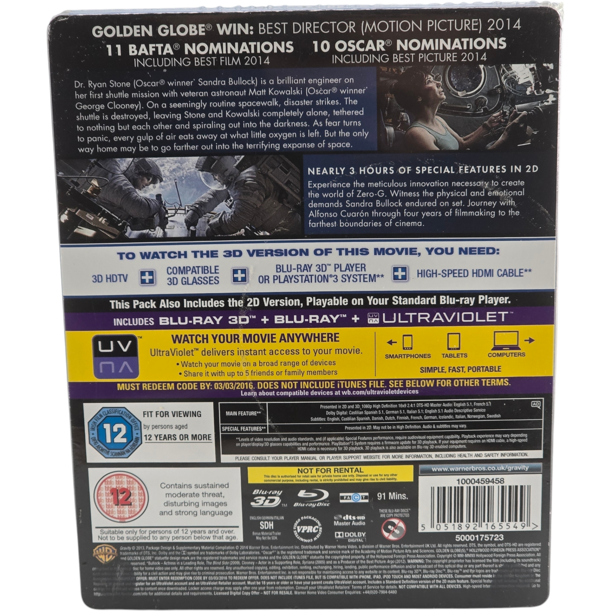 Gravity (2013) SteelBook Blu-ray 3D + 2D Zavvi Sandra Bullock, George Clooney