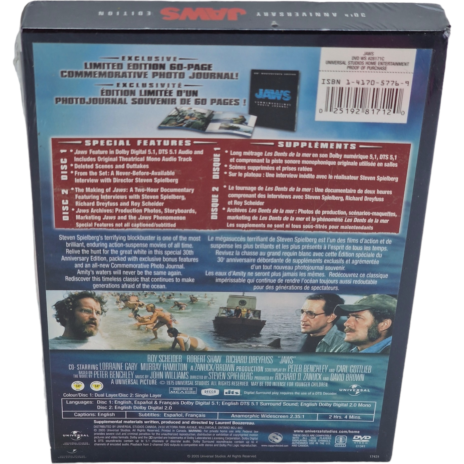 Jaws 1975 DVD Édition Coffret Collector 30e anniversaire Spielberg 2005 Zone 1