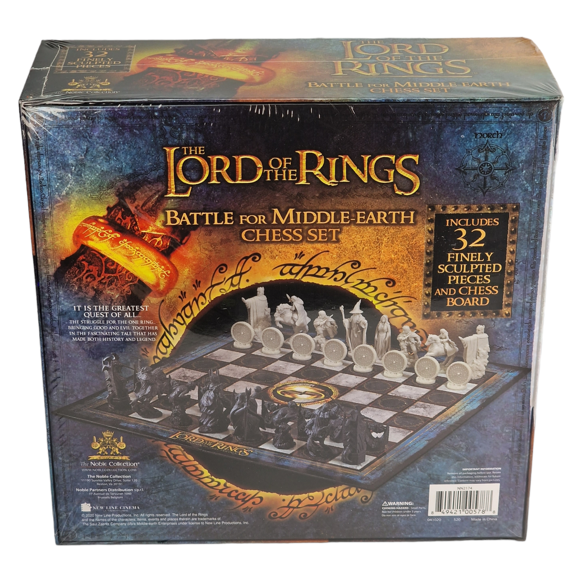 - Échiquier inspiré du film Le Seigneur des Anneaux, incluant 32 pièces.