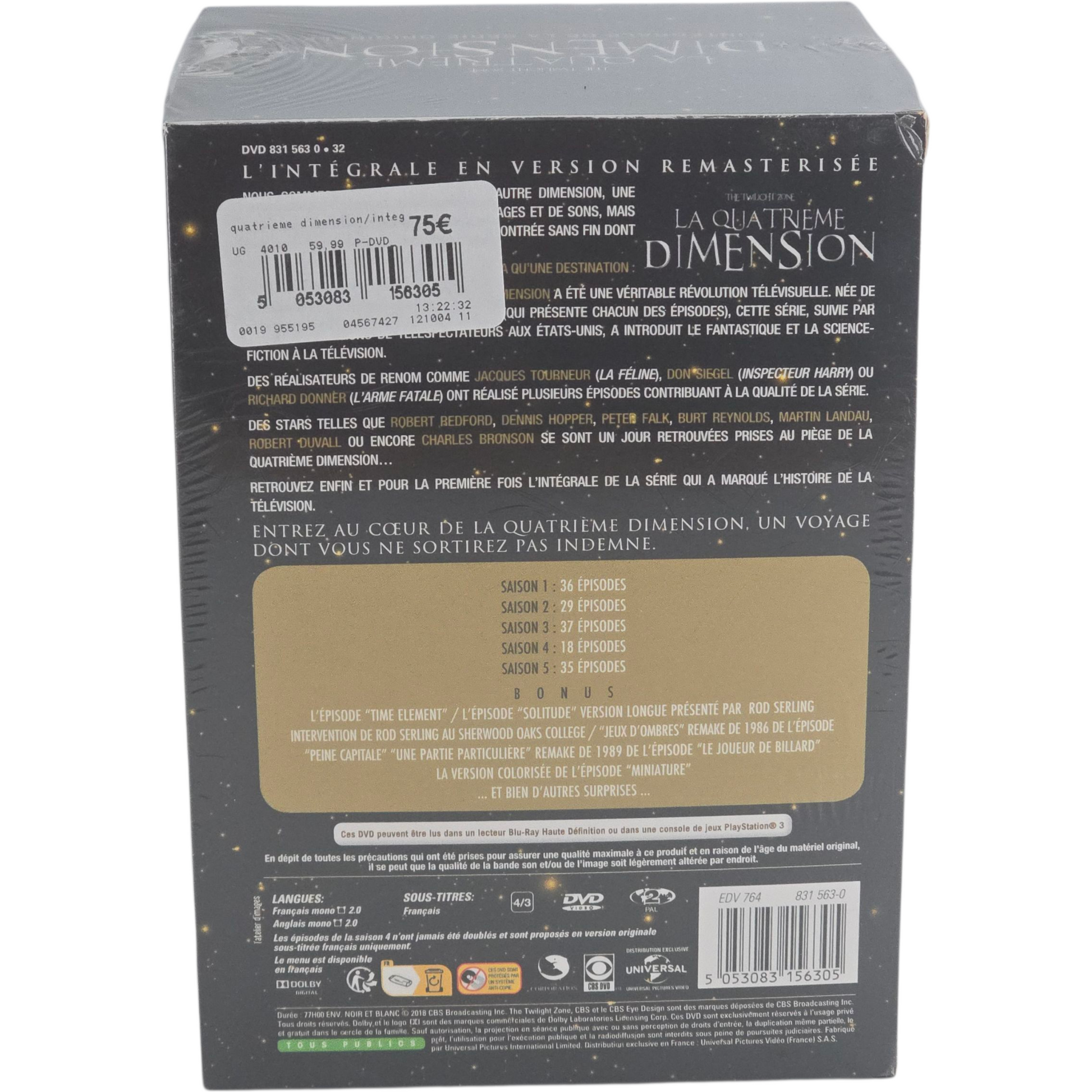 | 🎁 Bonus | • L’épisode "Time Element" • Version longue de l’épisode "Solitude" • Documentaires exclusifs sur Rod Serling • Épisodes remake (1985, 1989) • Court-métrage "Miniature", "Le joueur de billard" • Et bien d’autres surprises |