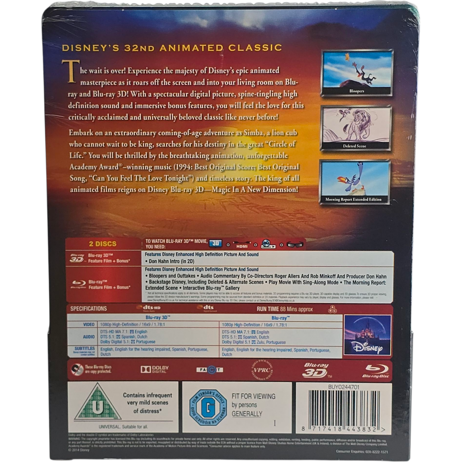 Le Roi Lion Blu-ray 3D + Blu-ray SteelBook Zavvi Disney Limitée 2014 Libre