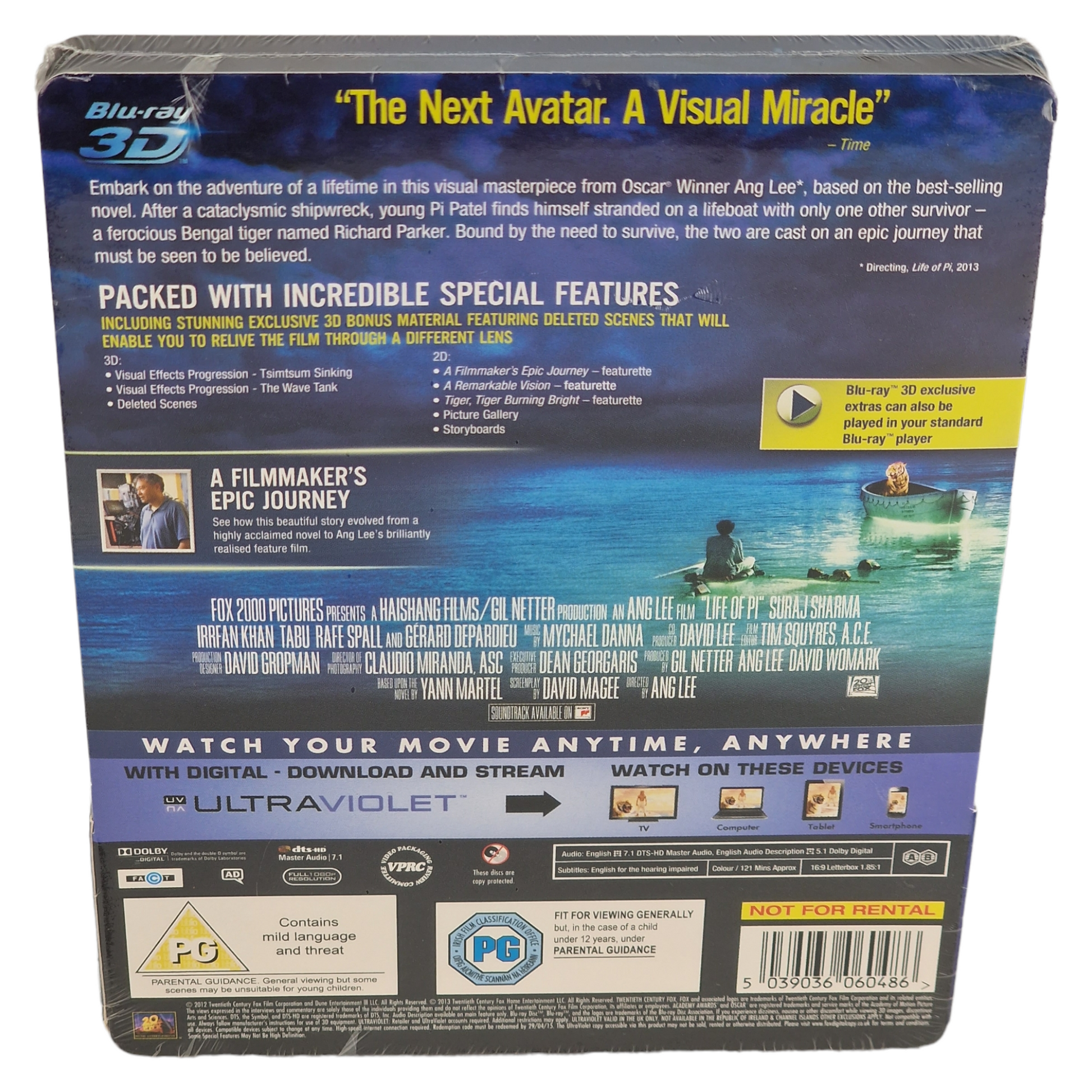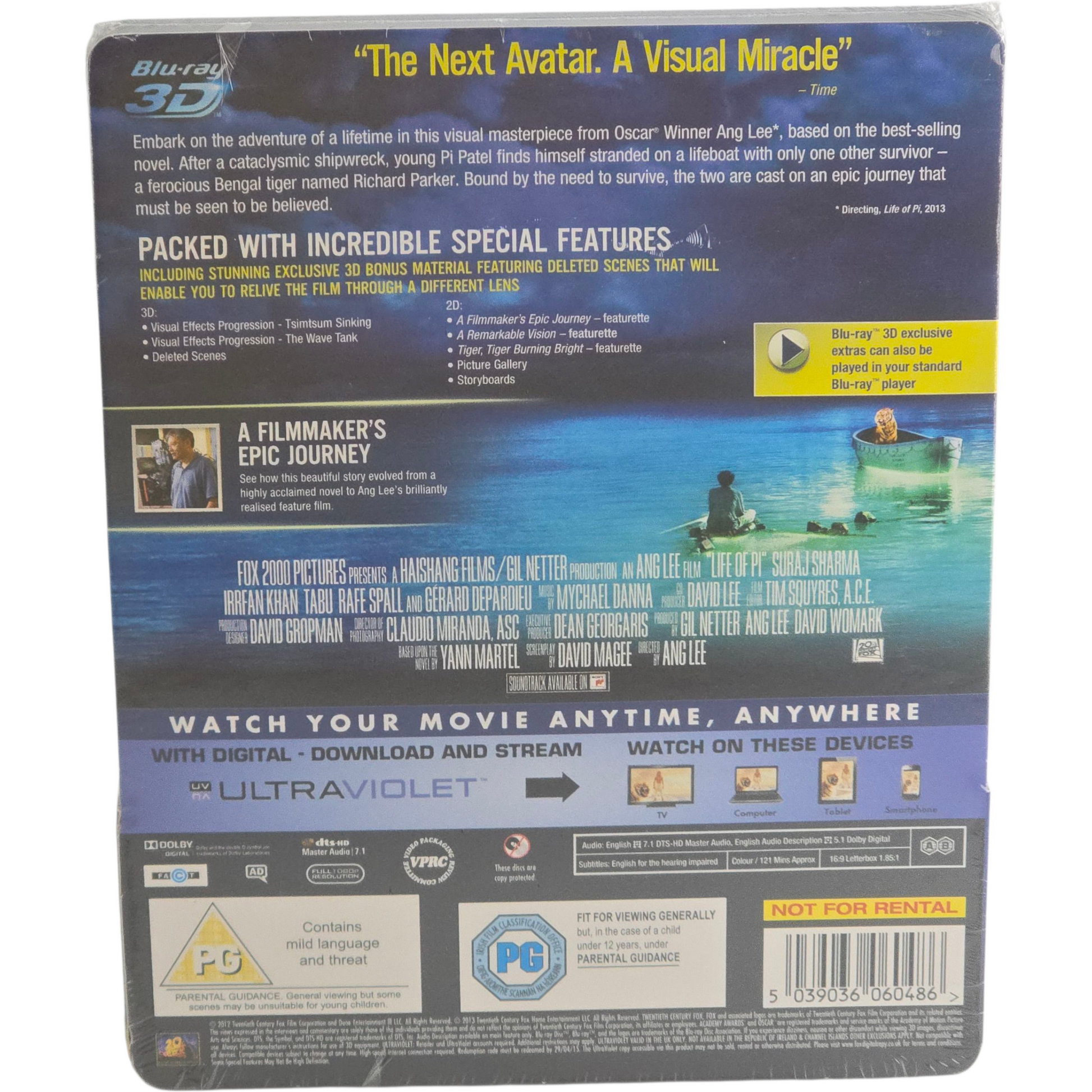 L'Odyssée de Pi Blu-ray 3D + 2 D SteelBook Zavvi Lenticulaire 2013 Region Libre