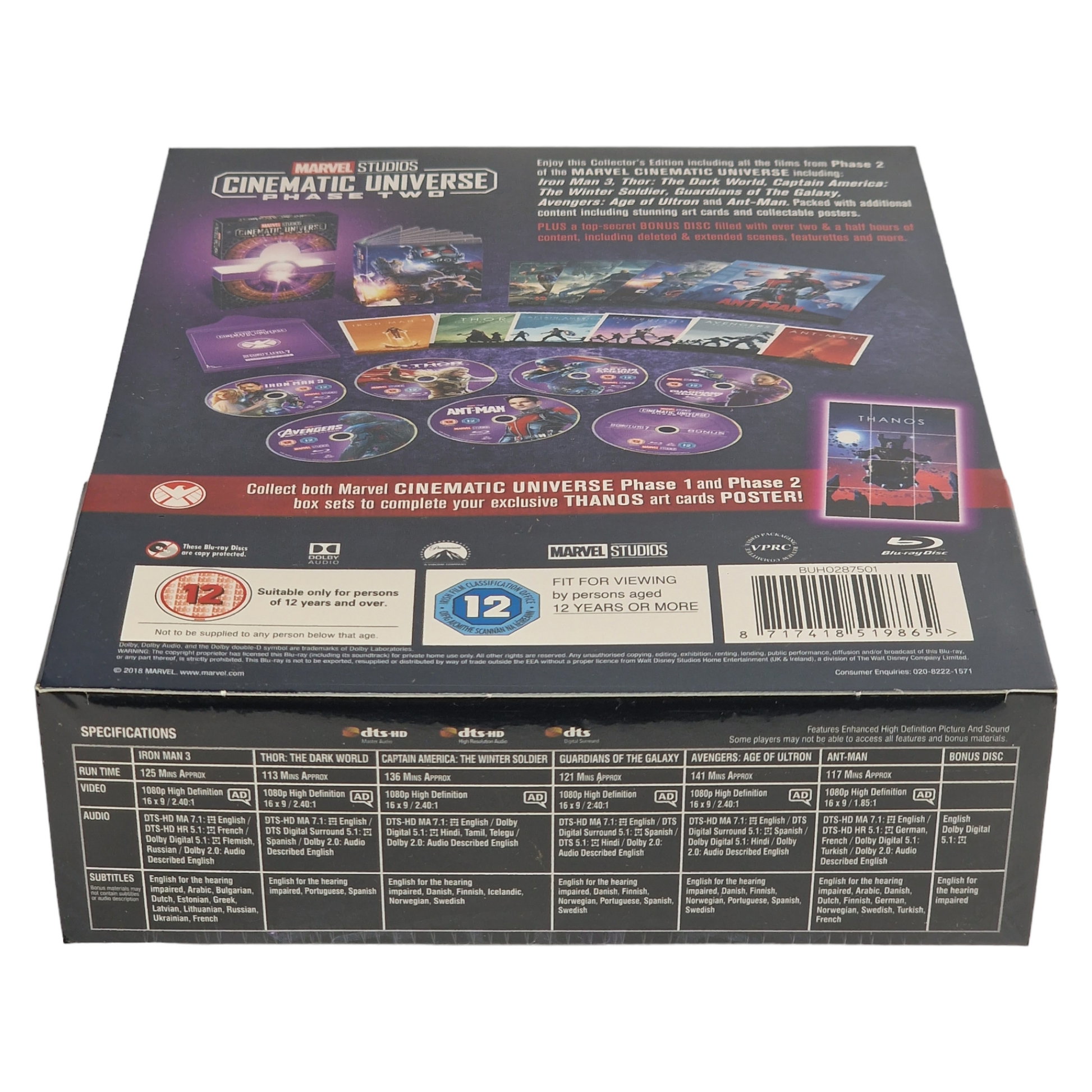 Contenu | 7 Blu-ray : - Iron Man 3 - Thor: The Dark World - Captain America: The Winter Soldier - Guardians of the Galaxy - Avengers: Age of Ultron - Ant-Man - Bonus Disc (contenus inédits) |