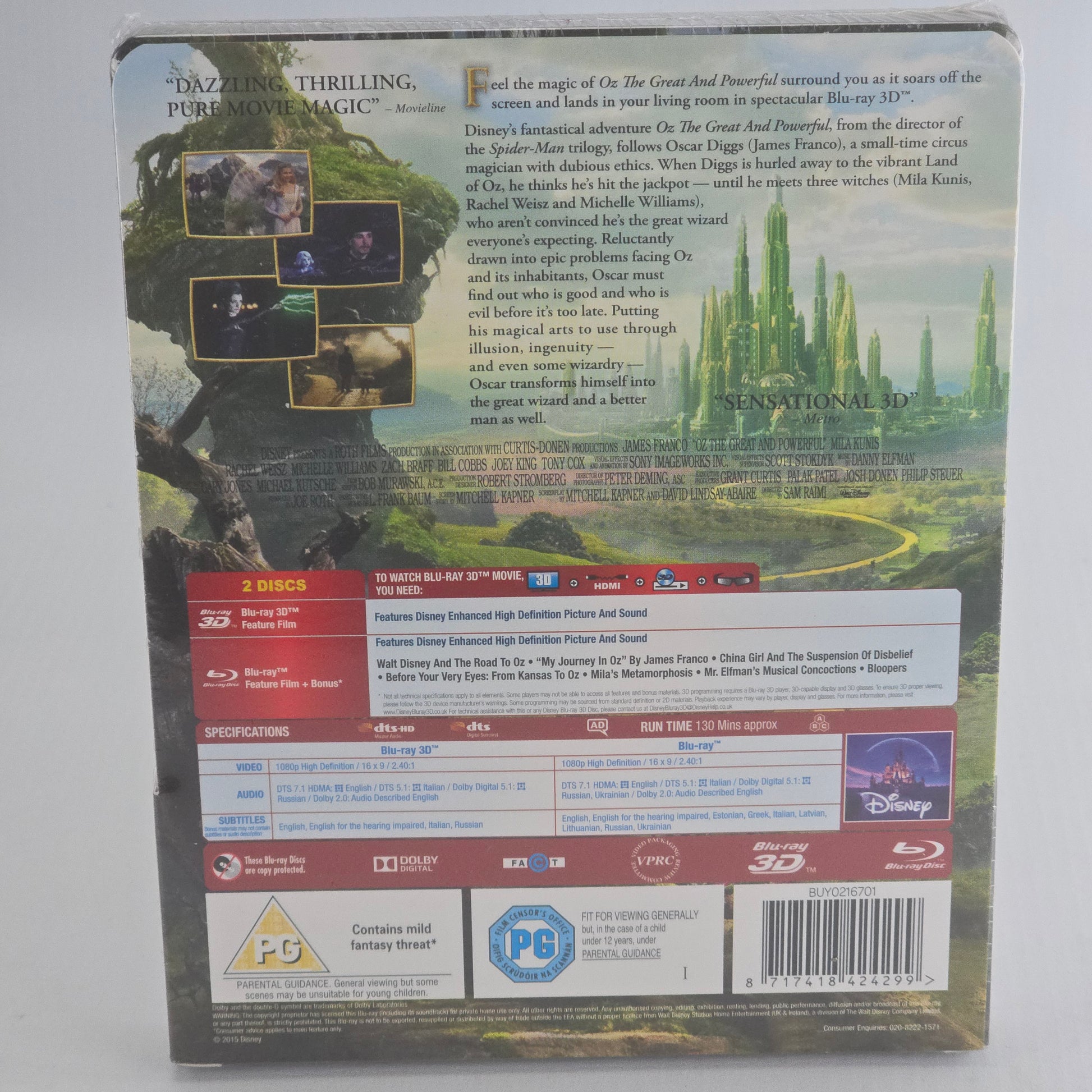 | 🎁 Bonus | • Walt Disney and The Road to Oz • My Journey in Oz by James Franco • China Girl and the Suspension of Disbelief • Before Your Very Eyes : From Kansas to Oz • Mila’s Metamorphosis • Bloopers • Mr. Elfman’s Musical Concoctions |