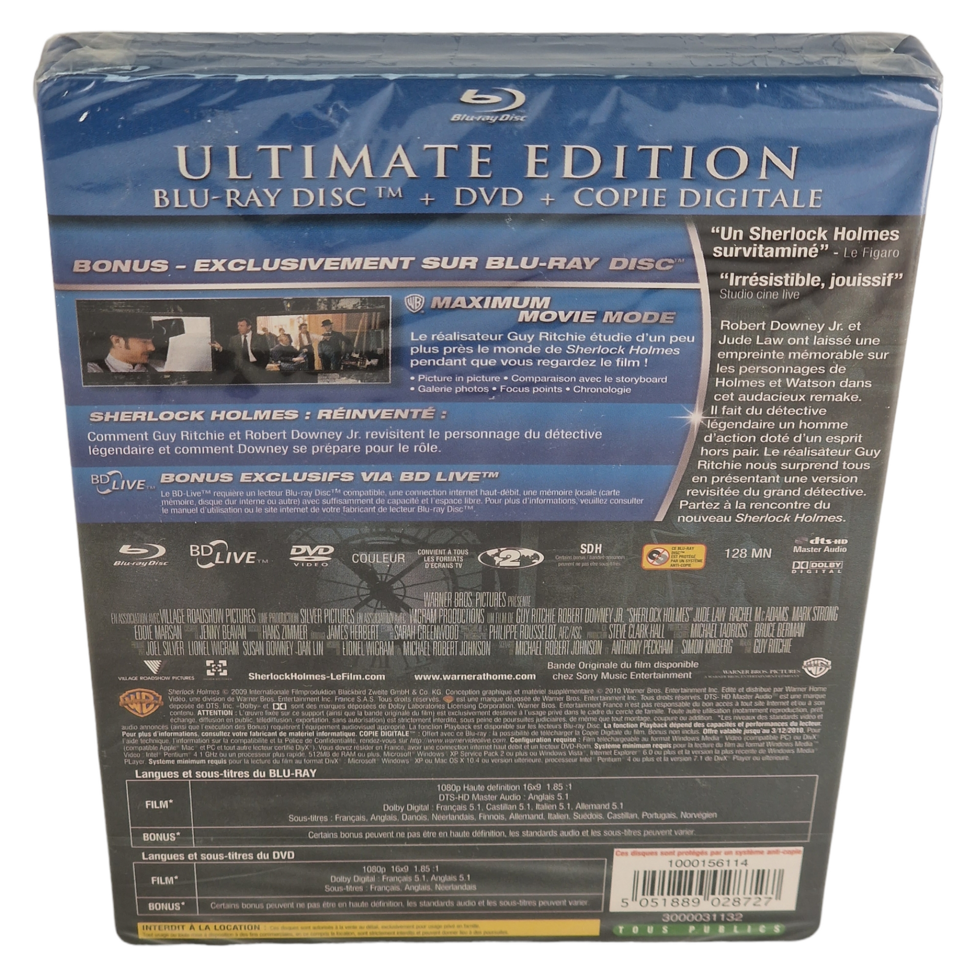 | 🎁 Bonus | • Mode Maximum Movie (picture in picture, coulisses) • Focus sur Guy Ritchie et Robert Downey Jr. • Accès BD-Live exclusif |