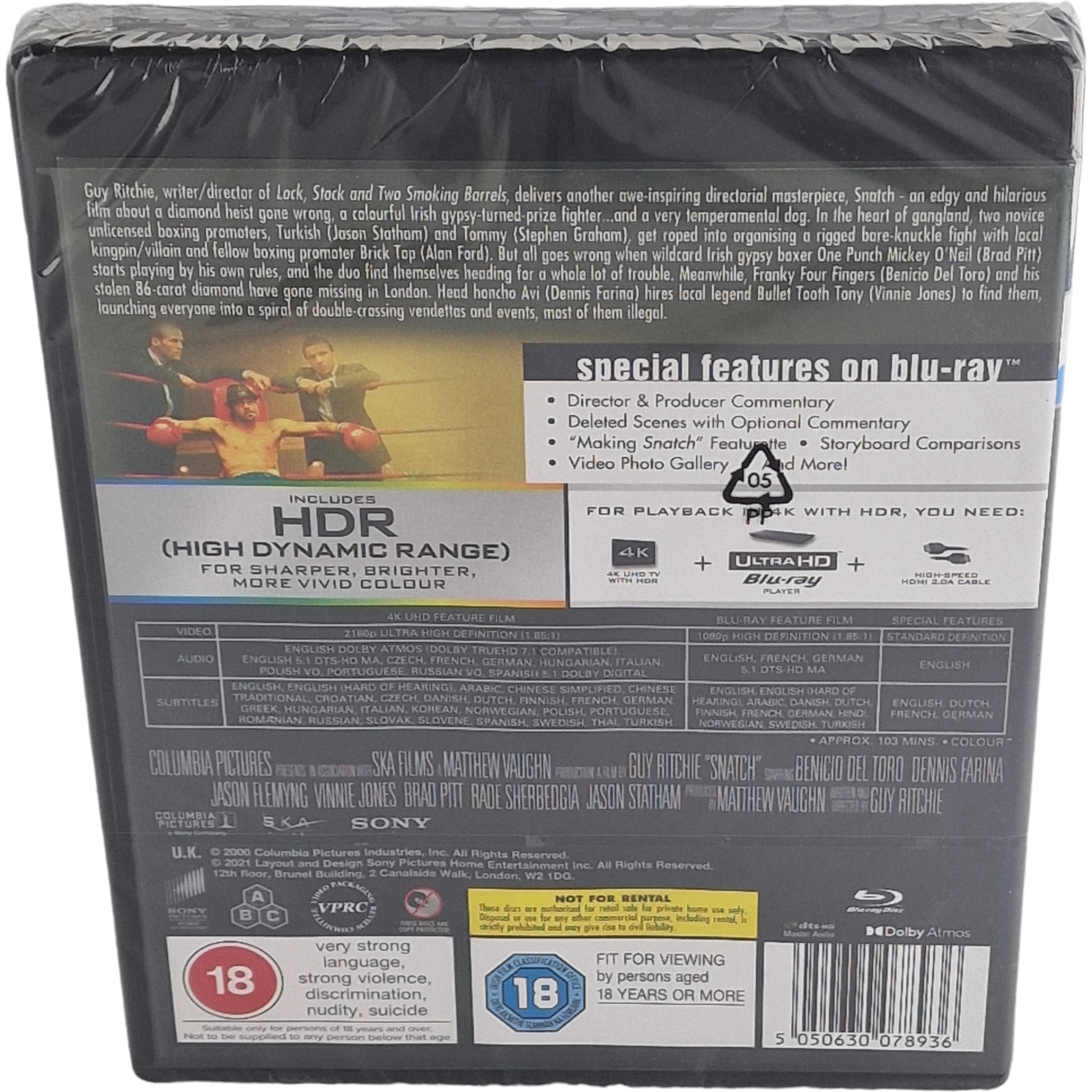 Snatch 4K Ultra HD + Blu-ray Benicio del Toro, Brad Pitt, Jason Statham B [-18]